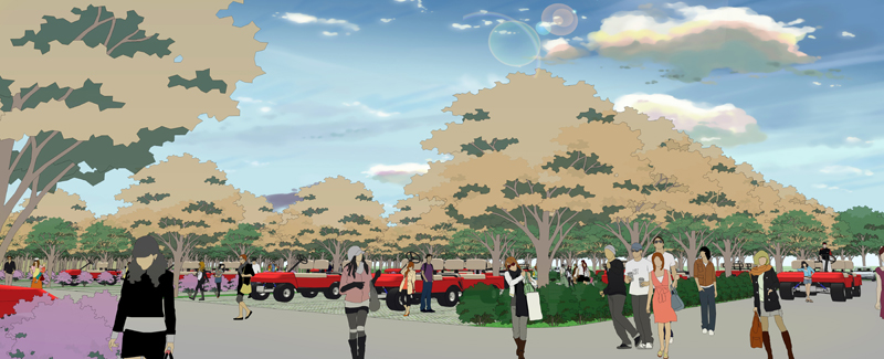 建筑設計主要采用簡歐風格,遵循“尊重自然、綠色生態、建筑風貌、景觀營造、可持續發展、低碳環保”的原則,布置在景區主干道右側和左側部分地塊,主要滿足大巴、中巴、小車、電瓶車以及回遷居民住宅。規劃區停車場設有四個車行主要出入口,其中兩個主要滿足停車場內部車輛進出,一個滿足電瓶車出入停車場,一個滿足回遷建筑出入。建筑前廣場主要考慮人流集散,后庭院主要突出景觀營造,通過對商業零售、回遷居住、景區服務、汽車維修等配套商業設施的建設滿足游客游覽需求。